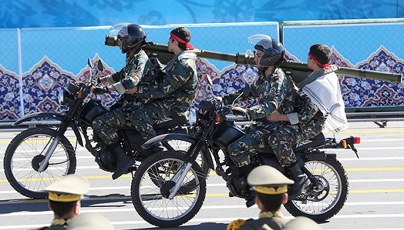 1乘坐摩托、携带便携式防空导弹的伊朗军人