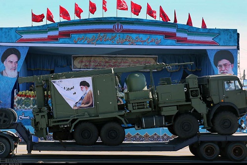 当地时间2016年4月17日,伊朗在首都德黑兰举行大阅兵,庆祝国家建军节。此次阅兵中,伊朗刚刚接收的俄制S-300导弹系统也首次亮相。不过此次亮相的S-300只有包括通信车、指挥车和吊车等指挥控制车辆、雷达车和辅助车辆,最关键的导弹发射车等设备均没有出现。这可能是俄罗斯尚未向伊朗完成S-300导弹的标志。