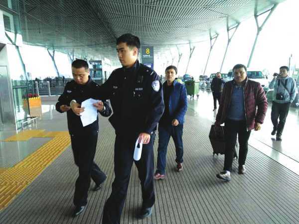 花溪警方护送热吉普(红衣服)登上了飞机。图由警方提供