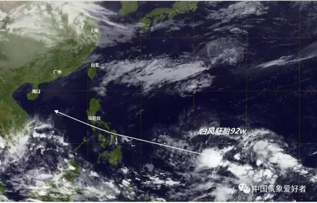 12月20日晚8点,台风胚胎92w在向日葵8号卫星云图上